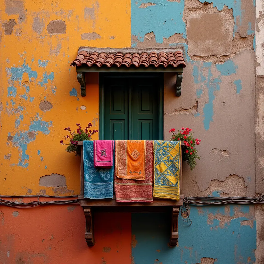 This vibrant balcony features a stunning tapestry that serves as a captivating backdrop, instantly enhancing the outdoor atmosphere. Incorporating a tapestry not only adds color but also creates a cozy, inviting space for relaxation or entertaining.