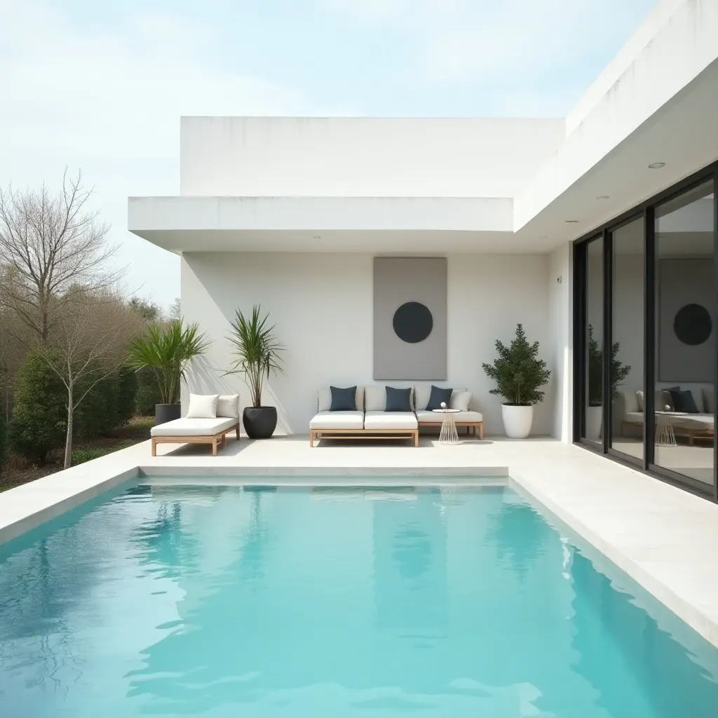 Adding minimalist furniture and subtle greenery can enhance the tranquil vibe, making it an ideal space for relaxation and social gatherings. Embrace simplicity to achieve a stylish Scandinavian-inspired poolside retreat.