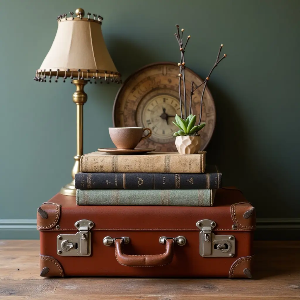 Consider using a vintage suitcase as a nightstand or side table. It offers both style and functionality while serving as a perfect storage solution for your favorite reads or personal treasures.