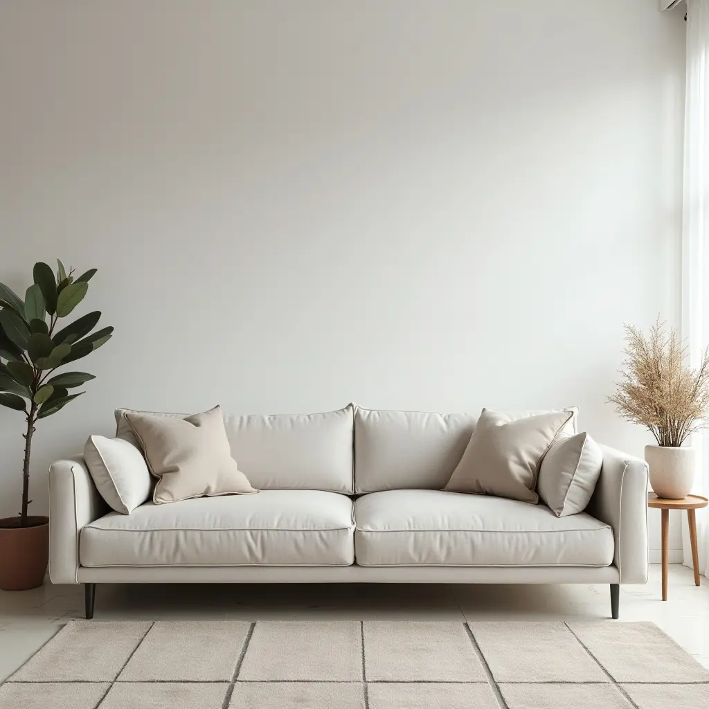 To further emphasize the clean lines of the sofa, use a neutral color palette for your walls and accessories. A simple, modern coffee table can serve as a focal point, while strategically placed plants can introduce a touch of nature, bringing warmth and life to the space.