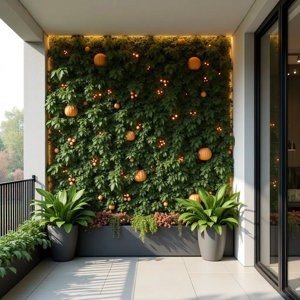 Elevate your balcony with a garden wall adorned with seasonal decorations. This creative approach not only showcases your personal style but also allows you to celebrate each season in a unique way.
