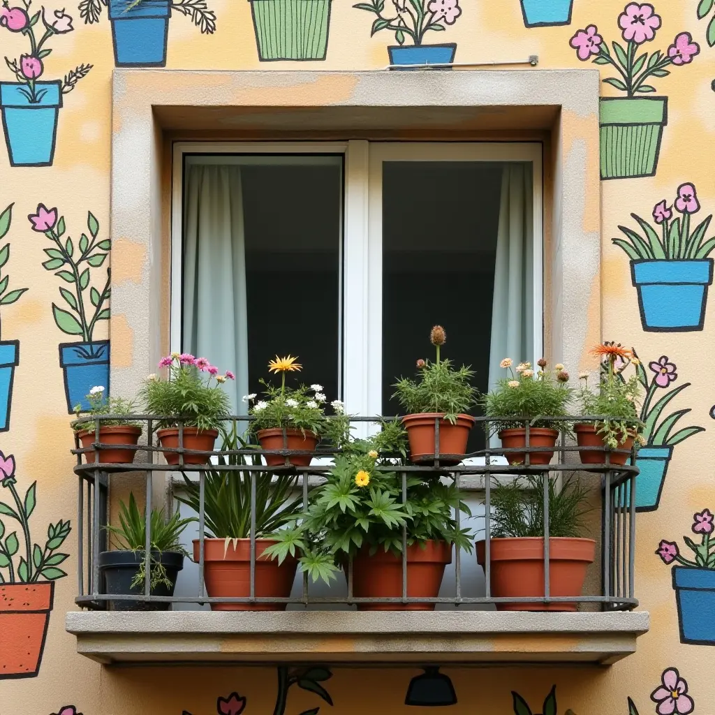 Artistic Plant Arrangements for a Unique Balcony Wall
