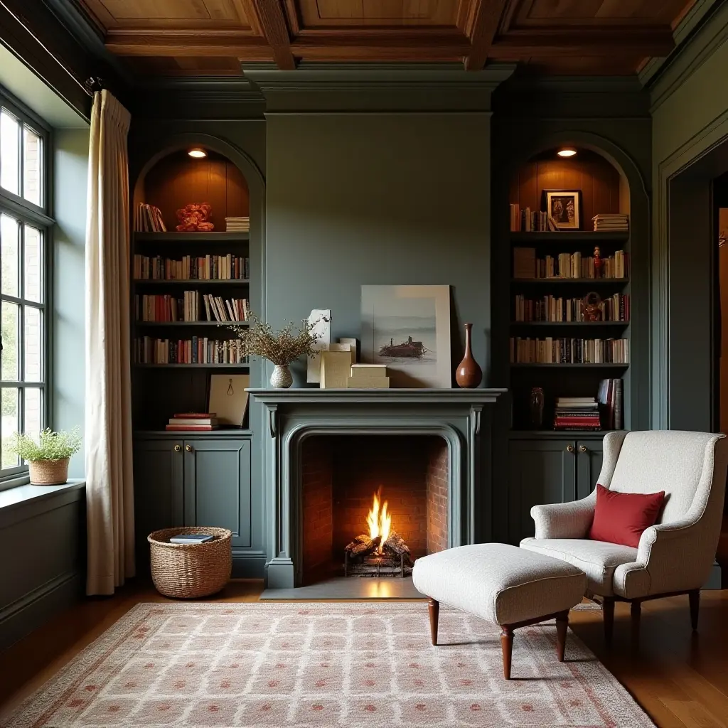 Consider incorporating natural wood bookshelves and plush seating to complement the earthy hues. Adding textured throws and cushions can also elevate the comfort level, making it a perfect spot for curling up with a good book.