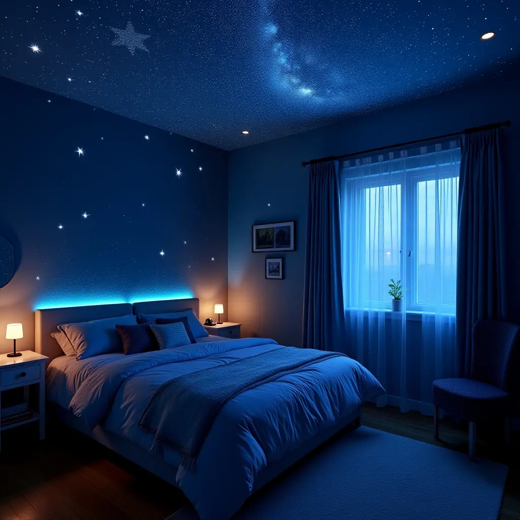 Enhance the dreamy vibe with twinkling fairy lights or glow-in-the-dark stars. By adding these elements, you can create a magical nighttime experience that encourages relaxation and creativity. A galaxy mural is a perfect way to express individuality and make a bold statement in any space!